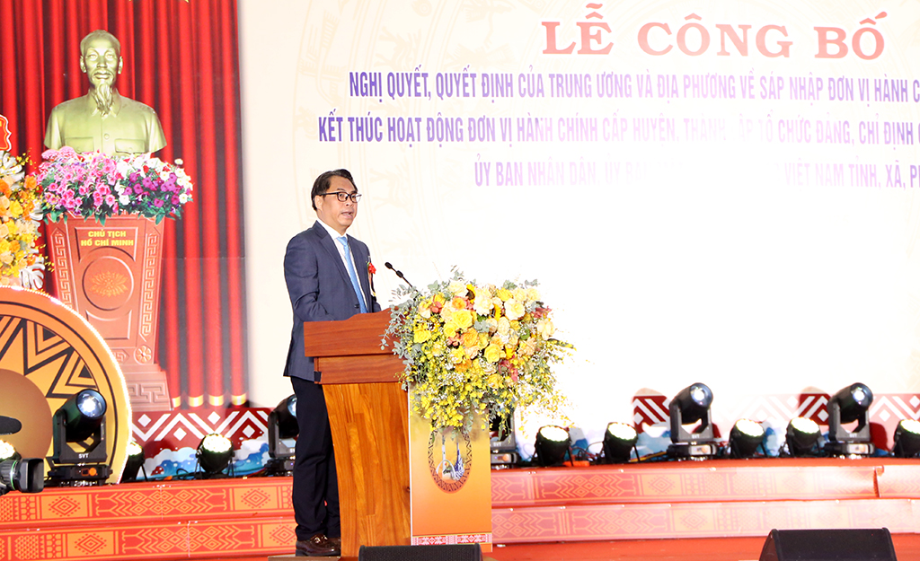 Tại buổi lễ, đồng chí Phan Thăng An - Phó Trưởng Ban Tổ chức Trung ương đã công bố các nghị quyết, quyết định của Trung ương đối với việc sắp xếp các đơn vị hành chính tỉnh, xã, phường 02 tỉnh.